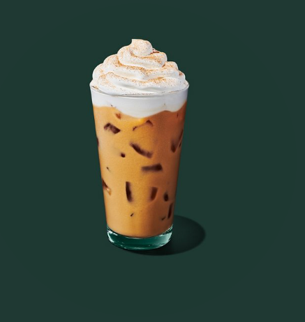 combination of pumpkin, cinnamon, nutmeg and clove—served over ice. Enjoy it topped with whipped cream and real pumpkin-pie spices.